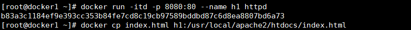 - index.html, index1.html을 각각의 컨테이너에 밀어넣기