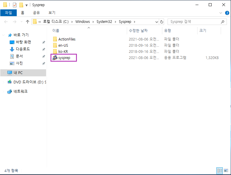 이러한 SID값의 중복을 피하기 위해서 sysprep (시스템 준비 도구)을 통해 어플리케이션은 건들이지