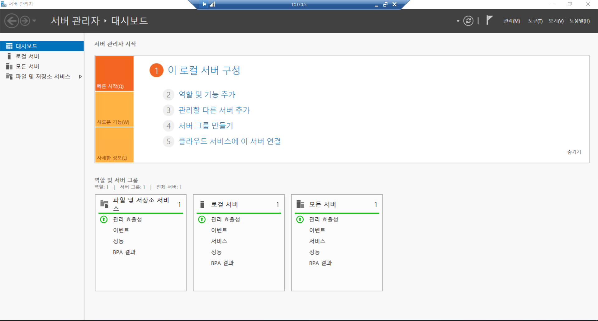 서버관리자의 로컬 서버 - 원격 데스크톱 '사용 안 함'을 클릭해줍니다