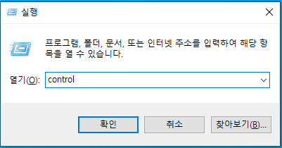 실행창에서 control을 입력하여 <제어판>으로 이동합니다